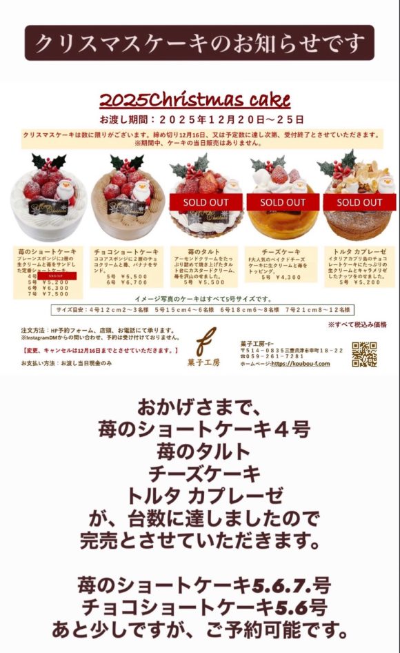 菓子工房-F-ではお客様が「幸せな気持ち」になって頂ける様なスウィーツを気持ちを込めて作らせて頂きます。是非ご賞味下さい。