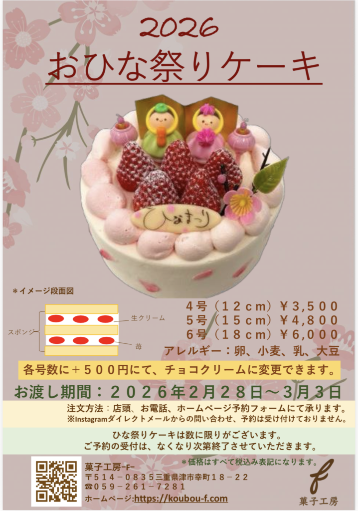 おひな祭りケーキ2026の予約スタートします!(^^)!